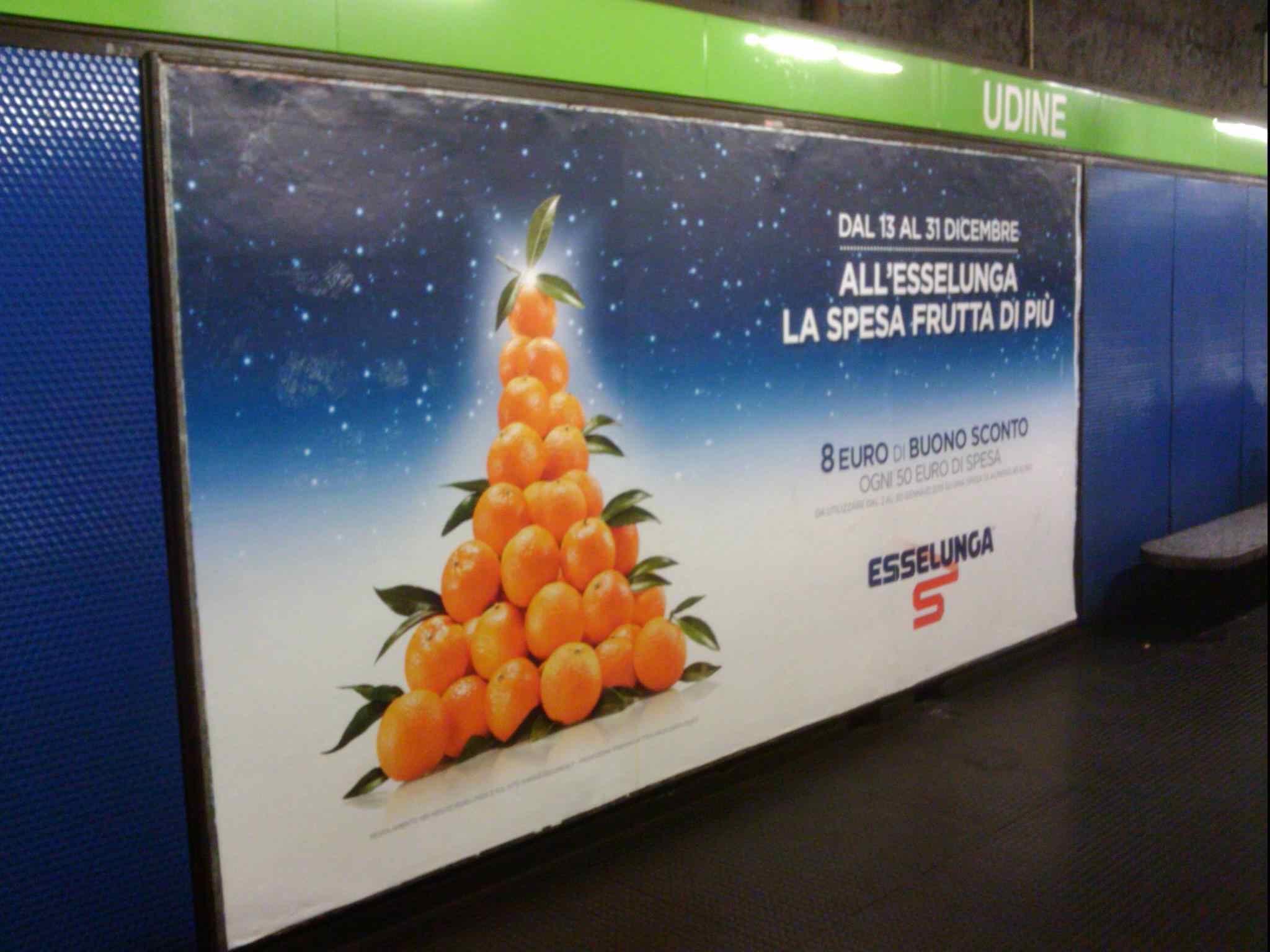 Venerdì sono andato a Bologna. Non sono partito presto. Alle otto ho preso il metrò da Cologno Nord, direzione Stazione Centrale. Il sole illuminava le carrozze-siluro, e nelle piattaforme, fra un vagone e l’altro, campeggiava la pubblicità dell’Esselunga. Stesse promesse, stessi ragionamenti. Ho ripensato ai commenti e ai risultati del sondaggio volante accluso al precedente post. Il tempo lasciar correre i pensieri e ho perso il sole irrompente: ho scattato la foto qui a fianco che già entravamo nella stazione di Cascina Gobba.