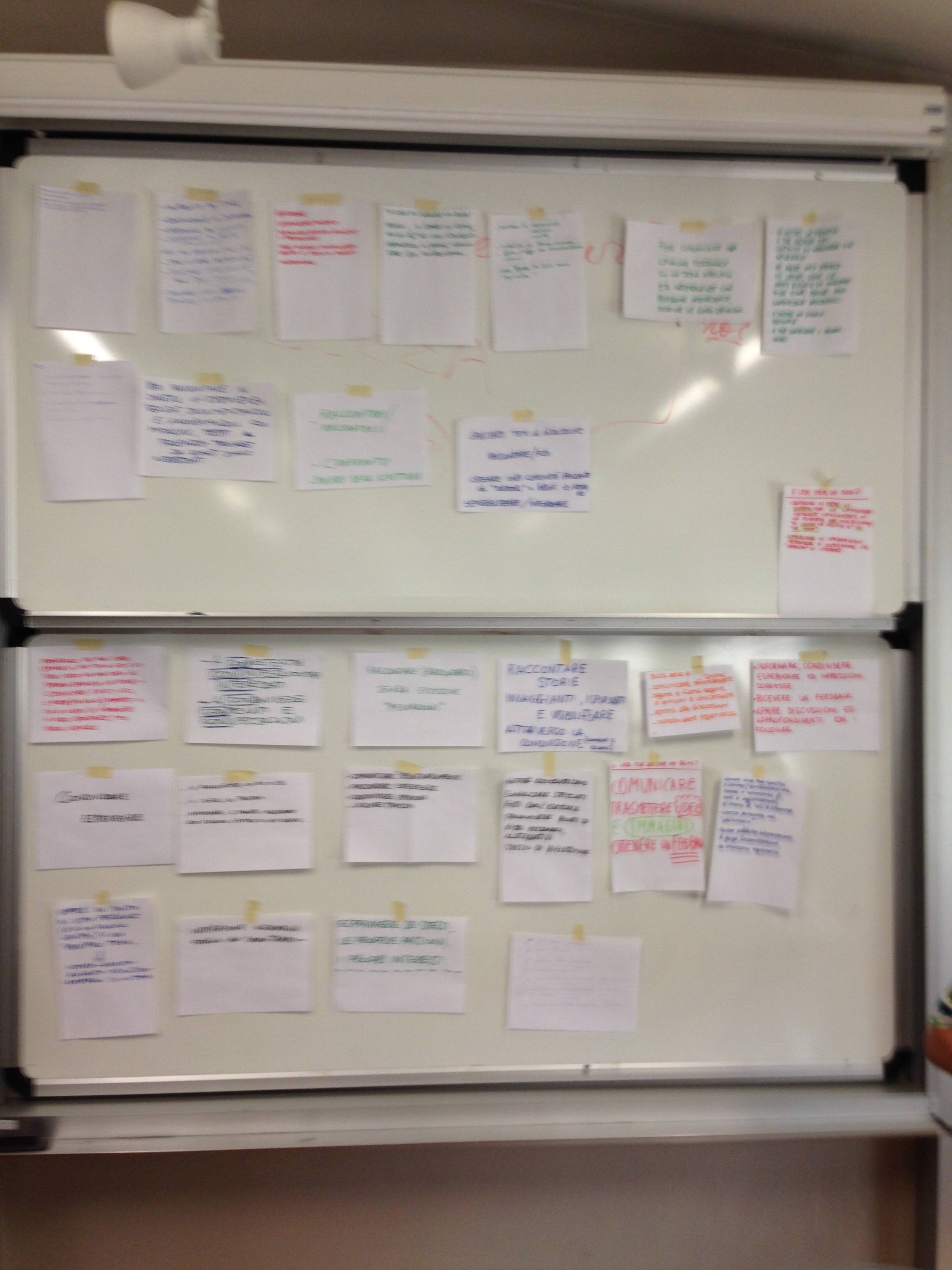 Per me non c’è nulla di più serio che lavorare con i post-it: quando si pensa in gruppo, quando si progetta a più mani, quando si cerca il contributo di ciascuno e di tutti, nelle scritture collaborative, quando dal confronto libero ci si muove verso focalizzazioni intermedie, per poi passare all’ordine della scrittura lineare.