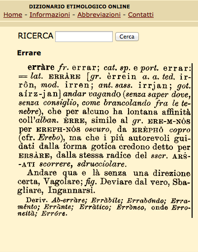 L’etimologia indica il brancolare, scivolare. Qualcosa va storto. Uno sbaglio. C’è stato un errore – si dice – quando le cose sono andate diversamente da come ci si aspettava (diversamente in senso negativo).