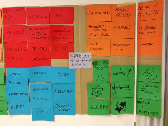 La tecnica Guizzo è servita per proporre un momento di interazione sul tema, favorire l’interazione e lo scambio di idee fra i diversi attori locali presenti, e per produrre materiali utili ad alimentare l’ingaggio di attori locali nella realizzazione del progetto.