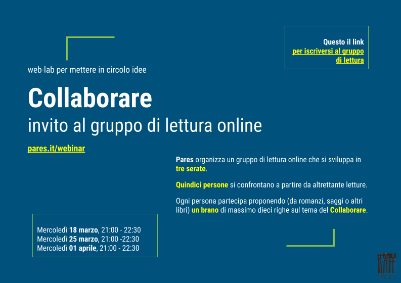 #Collaborare: questo il tema del #Gruppo_di_lettura_online in tre serate (prossimo a partire).