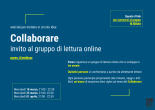 #Collaborare: questo il tema del #Gruppo_di_lettura_online in tre serate (prossimo a partire).Se vi interessa, nell’immagine trovate qualche info in più:– invito (ci sono quindici posti);– regole di ingaggio (sarà un … Continue reading
